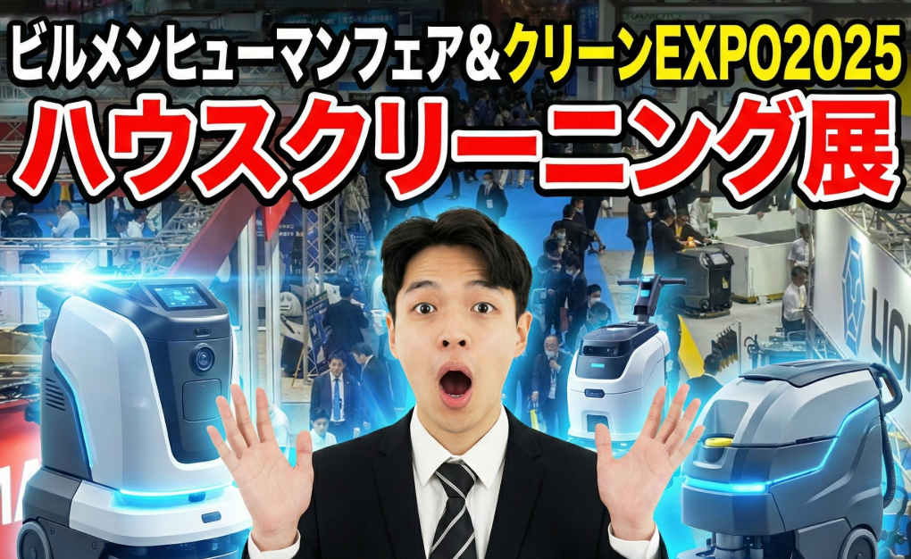 先日、2025年11月28日にお客様の施設を管理されている小林さんと鶴元さんが「ビルメンヒューマンフェア&クリーンEXPO2025 ハウスクリーニング展」に参加し、最新の清掃ロボットをはじめ、各種清掃用資機材の見学を行いました。
